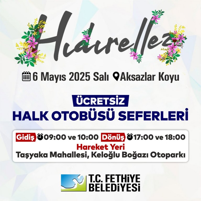 Açıklamasına devam eden Fethiye Muhacirler Sosyal Dayanışma Derneği Başkanı Kerem Kocatepe “6 Mayıs 2025 Salı günü Saat 09:00 da ve Saat 10:00 da Keloğlu Boğazı Kuran Kursu’nun önünden kalkacak olan iki ayrı Belediye otobüsümüz sırası ile Salı pazarı durağından ve Çarşıdaki Atatürk heykelinin önünden siz değerli misafirlerimizi alarak Aksazlar koyuna götürecek ve Akşam saat 17:00 ve 18:00 de’de Aksazlar koyundan kalkarak geri alındığınız yerlere bırakılacaksınız. Bizlere Aksazlar koyunda piknik yapmamıza ve otobüsler ile taşınmamızı sağlayan değerli Fethiye Belediye Başkanımız Sayın Alim Karaca'ya ve her zaman yanı başımızda olan Değerli Kültür Müdiremiz Sayın İlksen Halime Ok’a çok teşekkür ederiz. Not; Herkes kendi oturma düzenini, mangalını, kilimini, piknik düzenine göre getirsin orada sandalye, masa olmayacak sayılı piknik masası var onlarda erken saatlerde dolar” dedi. Haber/Gökhan Ayyıldız