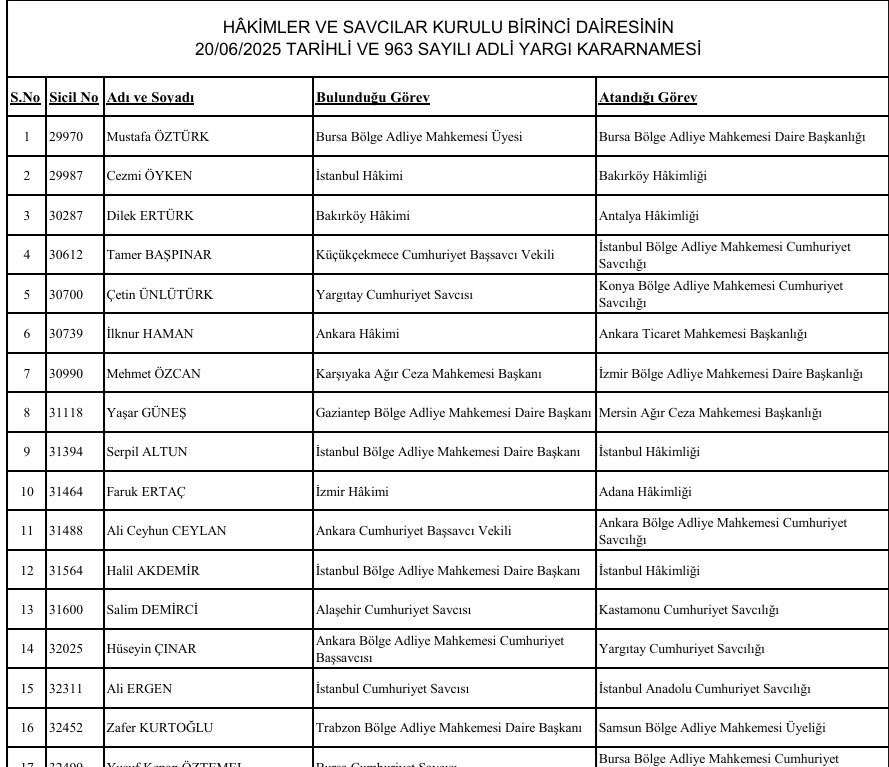 Hakimler ve Savcılar Kurulu'nun adli ve idari yargı 2025 yılı ana kararnameleri yayımlandı. Kararnamelerle birlikte adli ve idari yargıda 4 bin 36 hakim ve savcının görev yeri değişti.