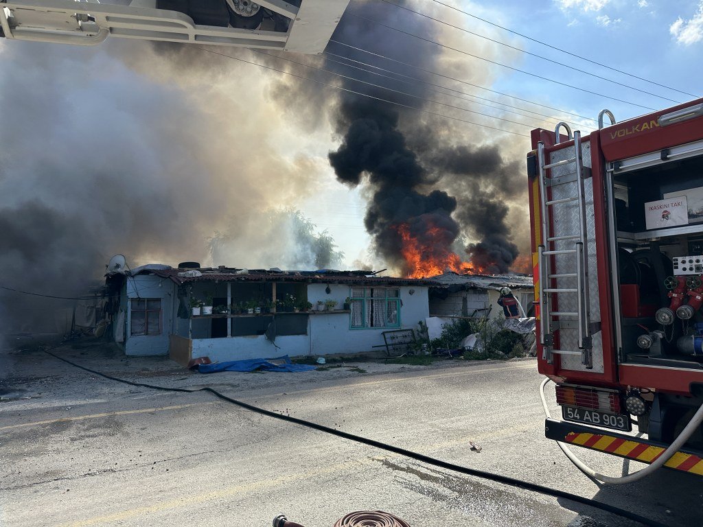 Sakarya'nın Erenler ilçesinde husumetli oldukları öğrenilen iki grup arasında çıkan kavgada ateşe verilen 4 ev kullanılmaz hale geldi