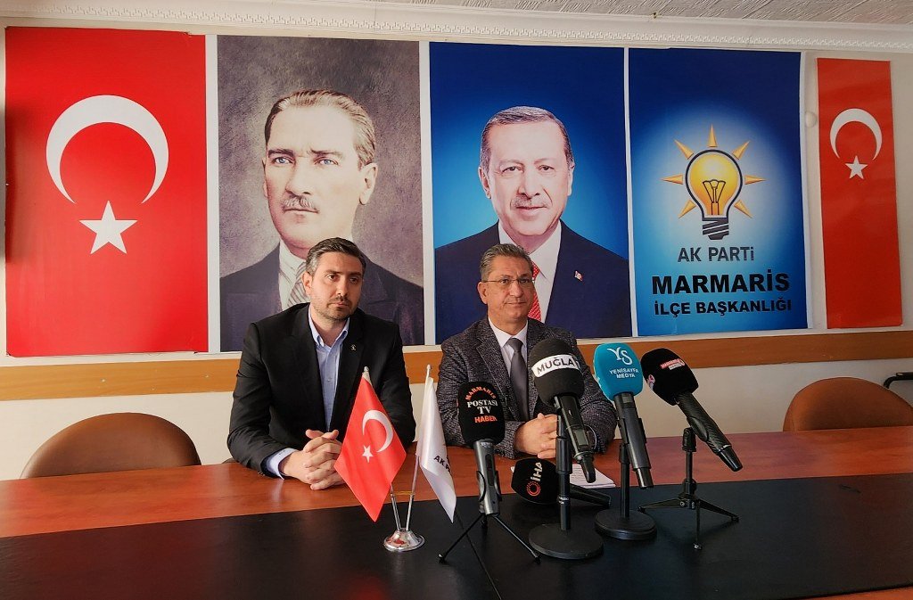 AK Parti Muğla İl Başkanı Haluk Laçin, AK Parti Marmaris İlçe Başkanı Muzaffer Aravi ile birlikte basın toplantısı düzenledi.