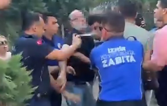 "Belediyemizin zabıta personelinin Konak ilçesi sınırlarında, bölgedeki seyyar satıcılık faaliyetlerine yönelik uygulamaları sırasında karşılaştıkları mukavemet neticesinde ortaya çıkan olumsuz görüntülerden büyük üzüntü duymaktayız. Zabıta personelimizin yasal görev ve yetkileri çerçevesinde kamu düzenini ve şehir estetiğini koruma sorumluluğunu yerine getirirken kendilerini hangi sınırlar içinde müdafaa edecekleri de mevzuat çerçevesinde tanımlanmıştır. Söz konusu olaya ilişkin görüntülerden anlaşılmaktadır ki personelimiz, tarafımızca tasvip edilmeyen ve kurumumuzun etik anlayışıyla uyuşmayacak bir şekilde görev sınırlarını aşan fiziksel müdahalede bulunmuştur. Bu doğrultuda derhal idari soruşturma başlatılmış ve olayla ilişkili zabıta memurlarımız açığa alınarak zorunlu izne çıkartılmıştır. Soruşturmanın tamamlanmasının ardından disiplin süreçleri titizlikle işletilecektir. İzmir Büyükşehir Belediyesi olarak çalışanlarımızın görevlerini hukuk devleti ilkeleri, insan haklarına saygı ve vatandaş odaklı hizmet anlayışıyla yürütmesi temel prensibimizdir."(İHA)