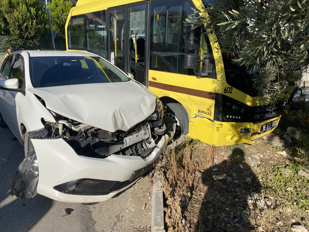 Mudanya ilçesi Siteler Mahallesi'nde saat 10.15'te meydana gelen trafik kazası, bölgede paniğe yol açtı. Bilim Caddesi'nden ilerleyen 2GH hattına bağlı 16 ATJ plakalı Burulaş otobüsü, Efeler Caddesi yönünden gelen 16 UAH plakalı otomobille çarpıştı. Çarpışmanın şiddetiyle her iki araç savrularak yol kenarında güçlükle durabildi.
