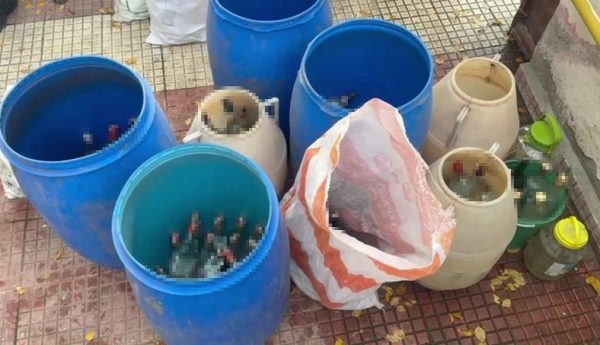 Şüphelilerin ikametlerinde gerçekleştirilen aramalarda 550 adet şişelenmiş mükerrer bandrollü kaçak alkol, 35 adet 0,5 litrelik pet şişede kaçak alkol ve 30 adet 5 litrelik bidonda kaçak alkol ele geçirildi.