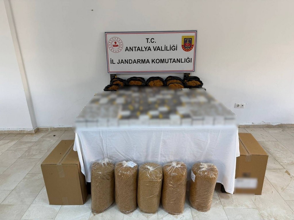 Antalya'da jandarmanın yaptığı operasyonda çok miktarda kıyılmış tütün ve makaron ele geçirildi.