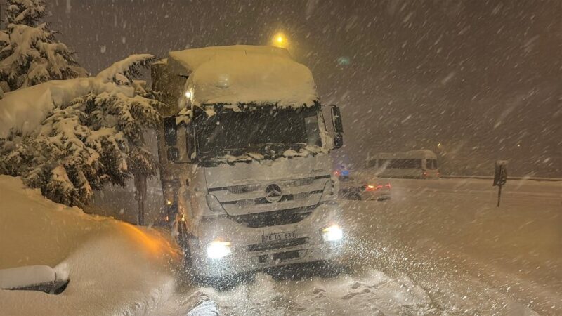 Yoğun kar yağışı ve buzlanma riski nedeniyle D-100 kara yolu Bolu Dağı geçişi, İstanbul ve Ankara yönlerinde ağır tonajlı araçların trafiğine kapatıldı. Polis ekipleri, tır ve kamyonları Elmalık Kavşağı’ndan TEM Otoyolu’na yönlendiriyor. Bölgede kar yağışının etkisini azaltması ve yolun güvenli hale gelmesinin ardından ağır tonajlı araçların geçişine izin verileceği öğrenildi. (İHA)