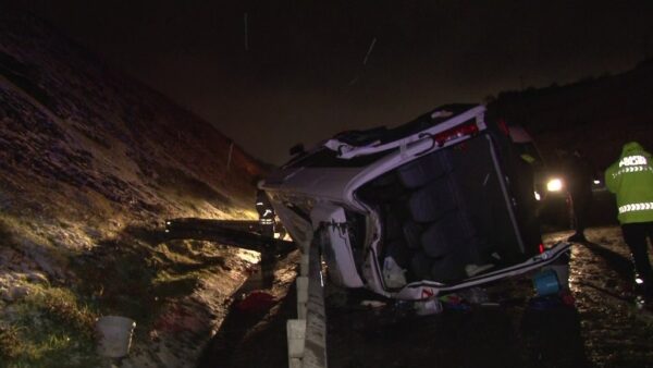 Kuzey Marmara Otoyolu Arnavutköy Boğazköy İstiklal mevkiinde kar yağışı sonrası kayganlaşan yolda servis aracı kayarak yan devrildi. Kazada 11 kişi hafif yaralandı.