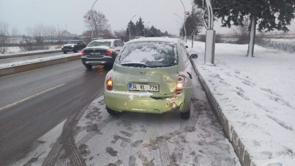 Edirne'de kar yağışı ve buzlanma sebebiyle 9 aracın karıştığı zincirleme kazada trafik durma noktasına geldi.