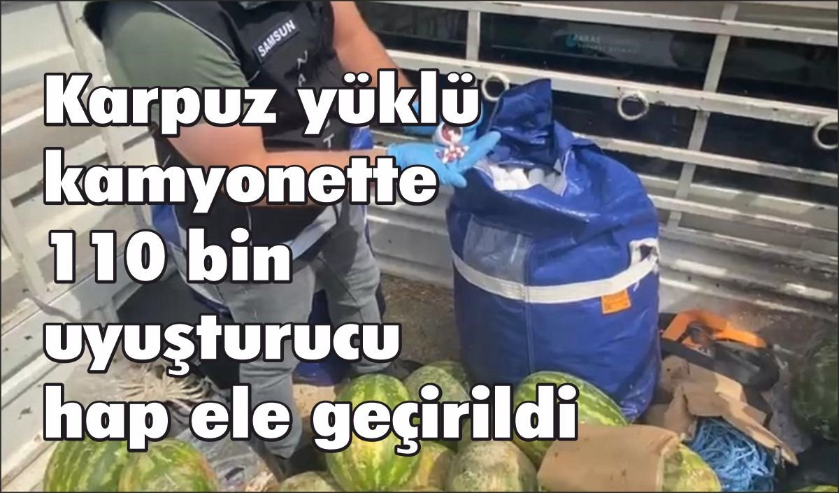 Samsun’da narkotik ekipleri, karpuz yüklü bir kamyonette gizlenmiş 110 bin 466 adet sentetik ecza hap ile uyuşturucu ticaretinden elde edildiği değerlendirilen 598 bin 770 TL nakit para ele geçirdi.