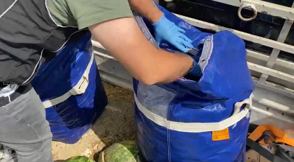 Uyuşturucu tacirleri, sevkiyatı gizlemek için hapları karpuz yüklü kamyonetin içerisine kamufle etti. Araçta yapılan detaylı aramada 110 bin 466 adet sentetik ecza hap ve 598 bin 770 TL nakit para bulundu.