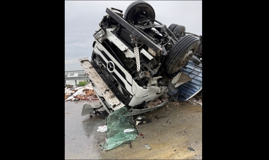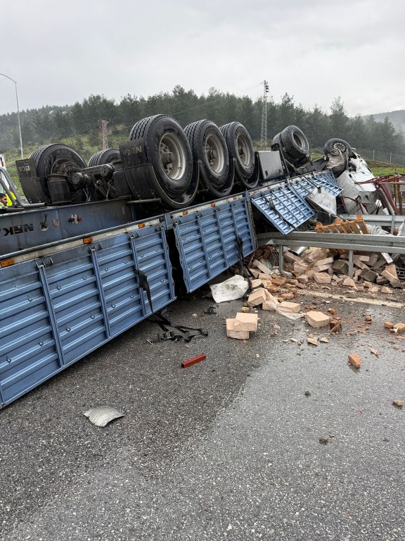 Kazaya karışan tır ters döndü: 1 yaralı