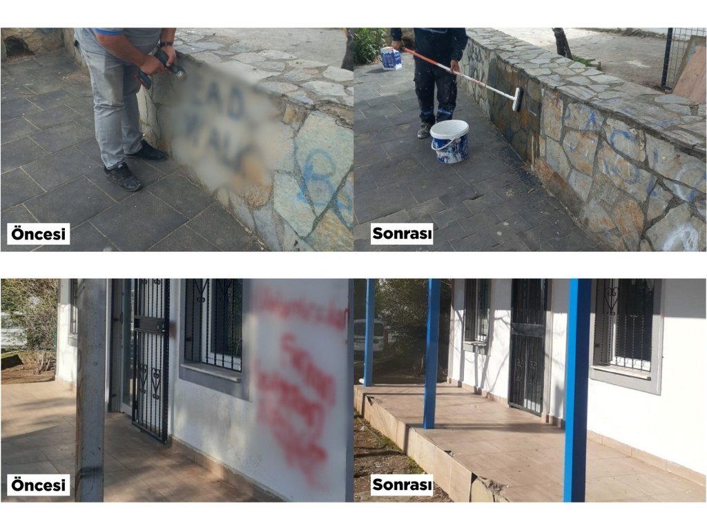 Muğla'nın Bodrum ilçesinde çevre düzeni ve estetik görünümün korunması amacıyla yapılan çalışmalar kapsamında son 6 ayda 29 duvar yazısı silindi.