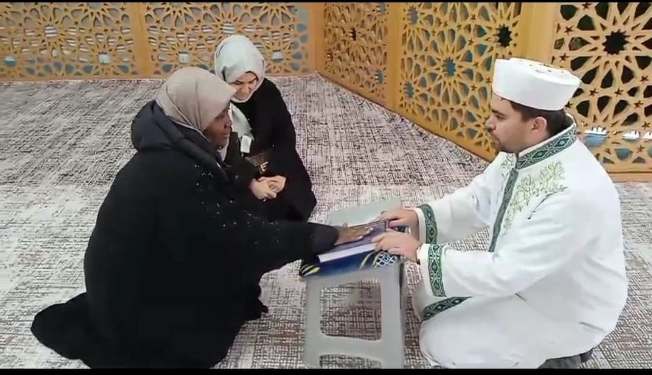 Adıyaman’ın Samsat ilçesine gelen Kenyalı kadın İslam dinini seçerek Müslüman oldu.