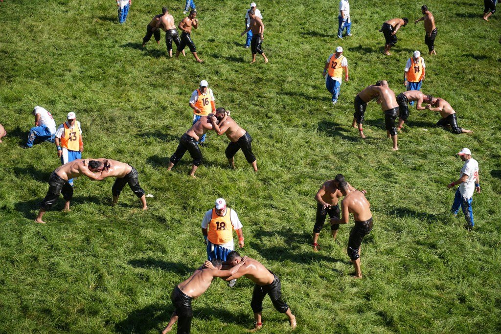 664. Tarihi Kırkpınar Yağlı Güreşleri, Edirne’de başladı. Pehlivanlar Sarayiçi Er Meydanı’nda kıyasıya mücadele ediyor.