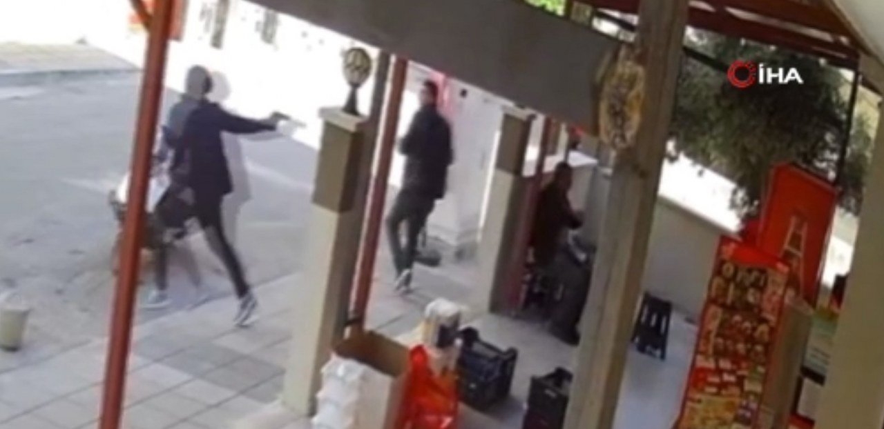 Kız meselesi yüzünden tartıştığı şahsa iş yerinin önünde kurşun yağdırdı. Kameralara yansıyan olayda yaralanan olmazken, şüpheli kaçtığı Diyarbakır'da yakalandı.