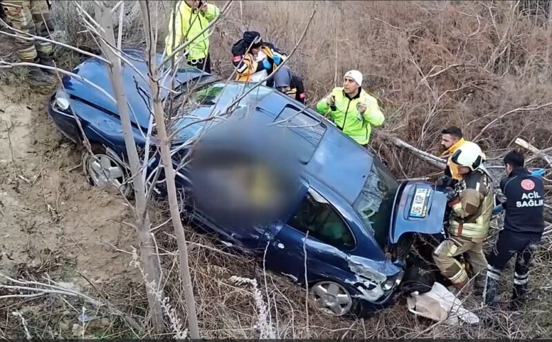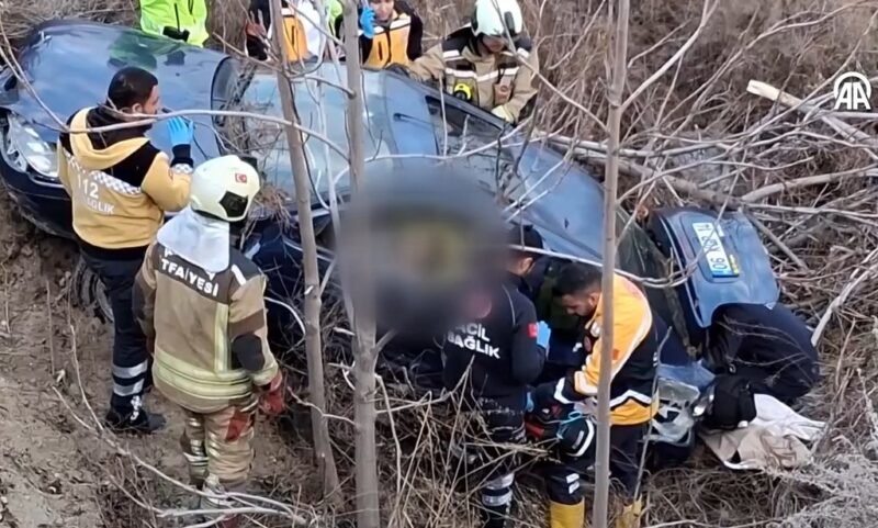 Ankara'nın Beypazarı ilçesinde devrilen otomobildeki 3 kişi hayatını kaybetti.