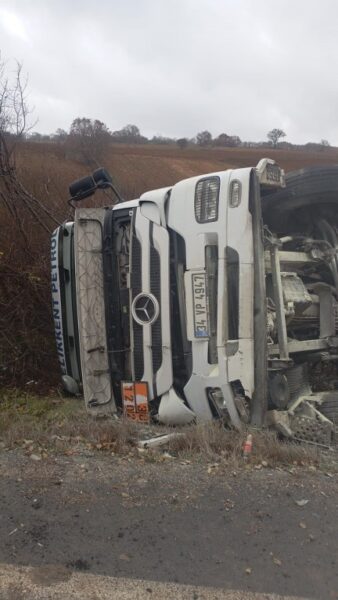 Edinilen bilgiye göre, henüz belirlenemeyen bir nedenle kontrolden çıkan petrol yüklü tanker yol kenarına devrildi. Kaza sonrası mazot sızıntısı meydana gelmesi üzerine güvenlik önlemleri artırılırken, Vize-Soğucak yolu geçici olarak trafiğe kapatıldı.