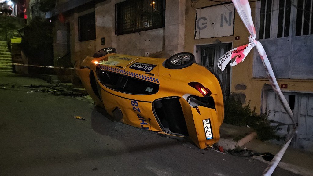 Kaza, saat 23.30 sıralarında İstanbul Şişli Eskişehir Mahallesi, Kınalı Keklik Sokak’ta meydana geldi. Edinilen bilgiye göre marketten su alan taksi sürücüsü, 34 THP 28 plakalı taksinin kontrolünü kaybetti. Bariyerleri de kırarak bir alt yol olan Lalezar Sokak’a uçtu. Takla atan ve ağır hasar alan takside sıkışan sürücü vatandaşların yardımıyla araçtan çıkarıldı. İhbar üzerine olay yerine itfaiye, sağlık ve polis ekipleri sevk edildi. Kaza sonucu burnu kırılan taksi sürücüsü hastaneye kaldırıldı. Taksinin freni patlaması sebebiyle alt yola uçtuğu iddia edildi.