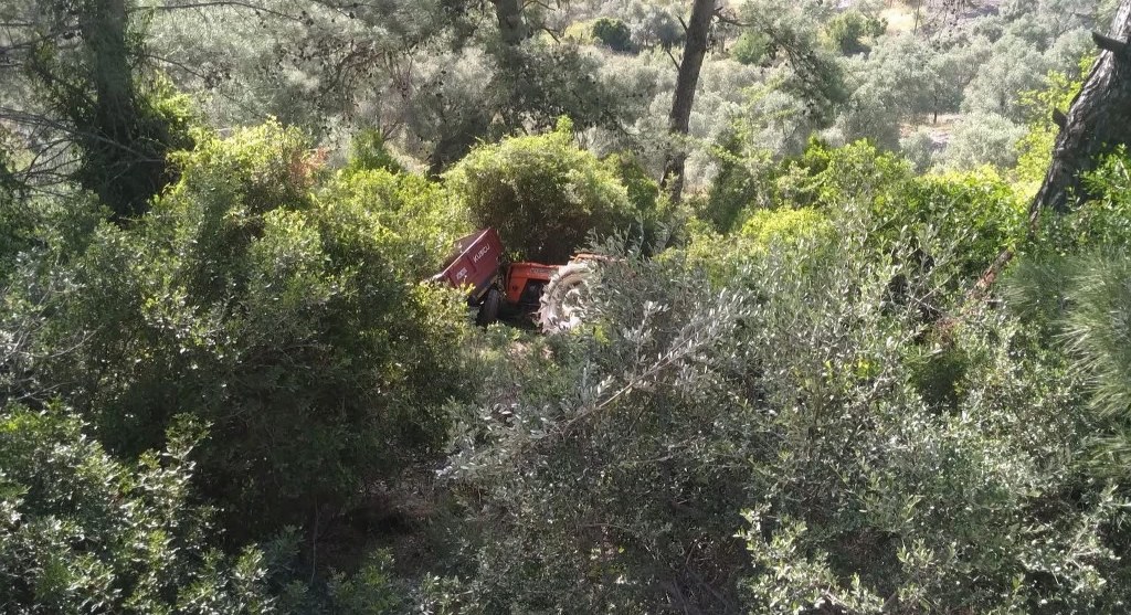 Muğla’nın Milas ilçesinde kontrolden çıkarak ormanlık alana devrilen traktör kazasında 2 kişi yaralandı