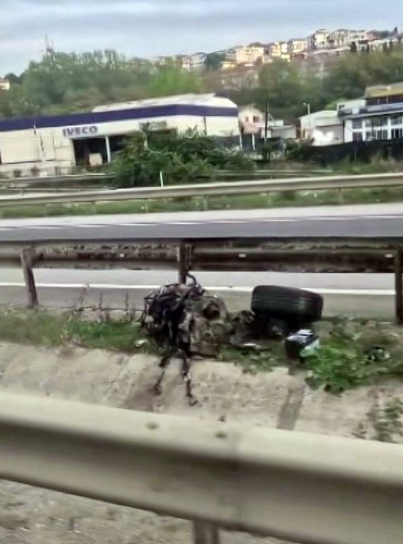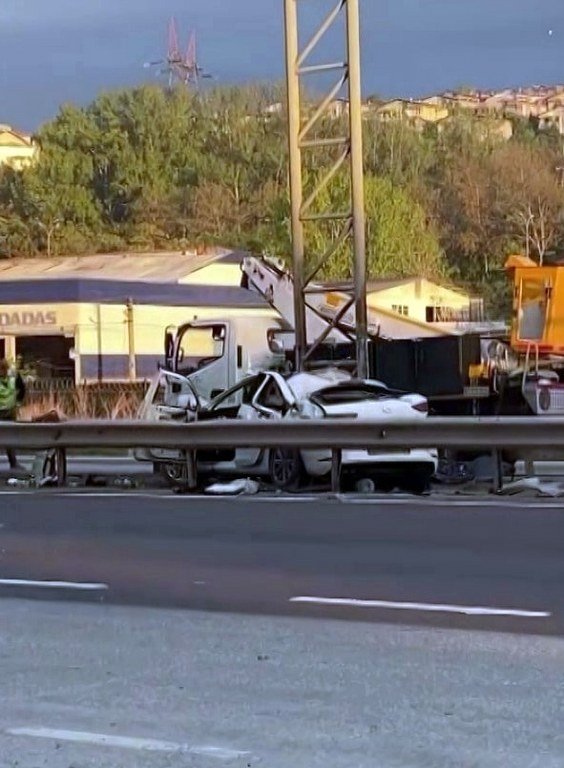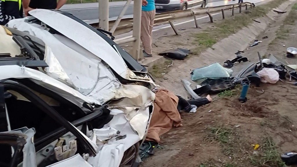 Kazada hurdaya dönen otomobilin parçaları yola savrulurken, direksiyon, motor ve konsol gibi parçaların metrelerce uzağa fırladığı görüldü.