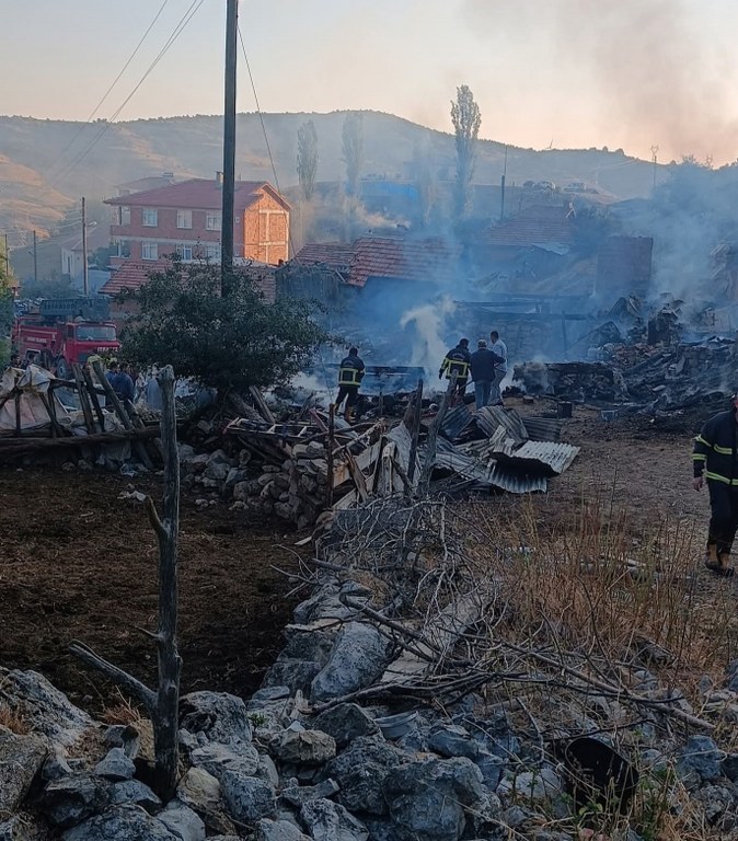 Sinop’un Boyabat ilçesine bağlı Kılıçlı köyünde çıkan yangında 2 ev, 2 ahır ve 1 samanlık tamamen yanarak kullanılamaz hale geldi. Bayram Demirciler’e ait ev ve ahırda başlayan yangın, kısa sürede büyüyerek yakındaki bir eve de sıçradı. Yangında ayrıca bir büyükbaş hayvan telef oldu. İhbar üzerine olay yerine sevk edilen itfaiye ve jandarma ekiplerinin müdahalesiyle alevler kontrol altına alınırken, olayda ölen ya da yaralanan olmadı. Yangının çıkış nedeni araştırılıyor./İHA