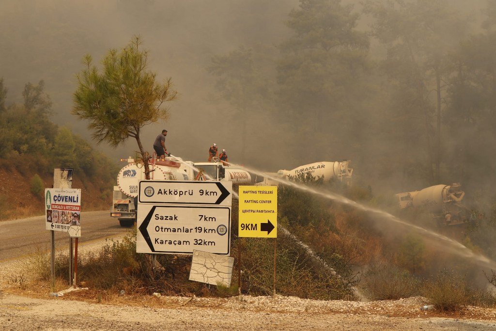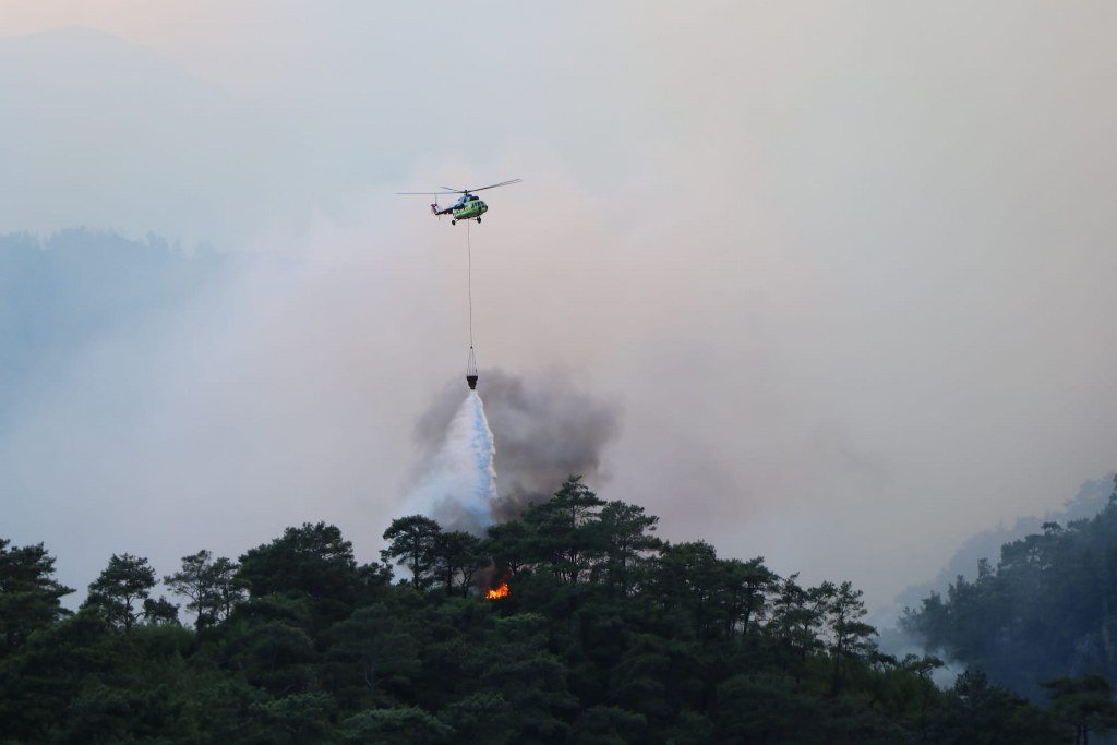 Orman yangınına ekiplerle birlikte orman gönüllüleri, belediye itfaiyeleri, emniyet ve jandarma TOMA ekipleri de destek verdi. Zorlu arazi ve hava şartlarına rağmen, alevlere karşı omuz omuza mücadele devam ediyor.