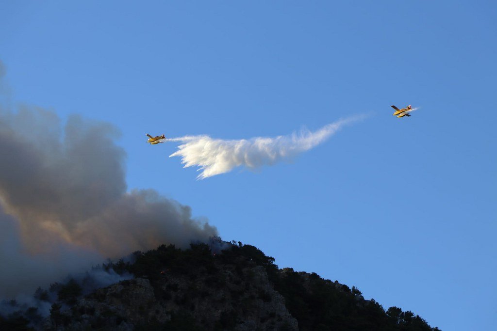 Muğla’nın Köyceğiz ilçesi Akköprü Mahallesi’nde devam eden orman yangınına müdahale gün boyu yoğun şekilde sürdü. Şiddetli rüzgar hava araçlarının müdahalesini zaman zaman aksatırken, akşam saatlerinde rüzgarın şiddetini azaltmasıyla havadan söndürme çalışmalarına tam kapasiteyle devam edildi.