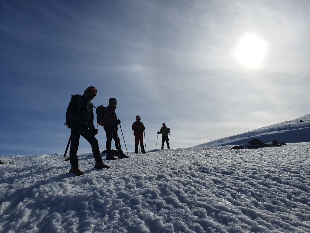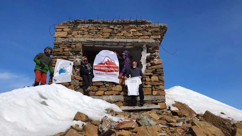 Zirvenin güney ve doğu yüzlerinde rüzgarın çok sert olması nedeniyle ekip, batı hattını takip ederek kontrollü bir yükseliş gerçekleştirdi. Zirvenin kuzeybatı hattından, sert kar zeminde ve krampon kullanmaya ihtiyaç duymadan ilerleyen 5 sporcu, saat 09.45’te zirveye ulaştı ( 2295 metre).