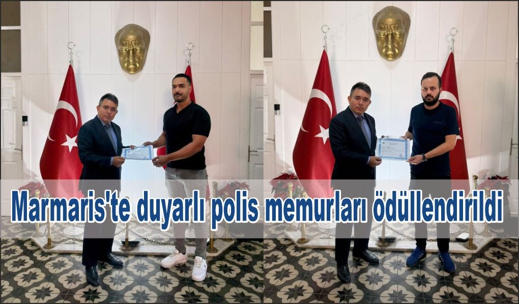 Muğla'nın Marmaris ilçesinde bir kadına silahlı saldırıyı önleyen polis memurları başarı belgesi ve hediye ile ödüllendirildi.