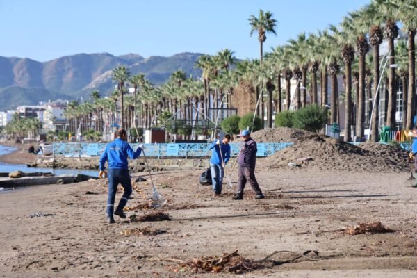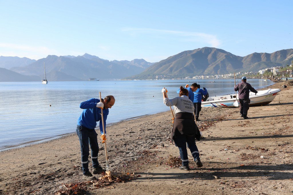 Hafta sonu etkili olan şiddetli fırtına ve yağmurun ardından Marmaris Belediyesi ekipleri sahil ve yürüyüş yollarında yoğun bir temizlik çalışması gerçekleştirdi.