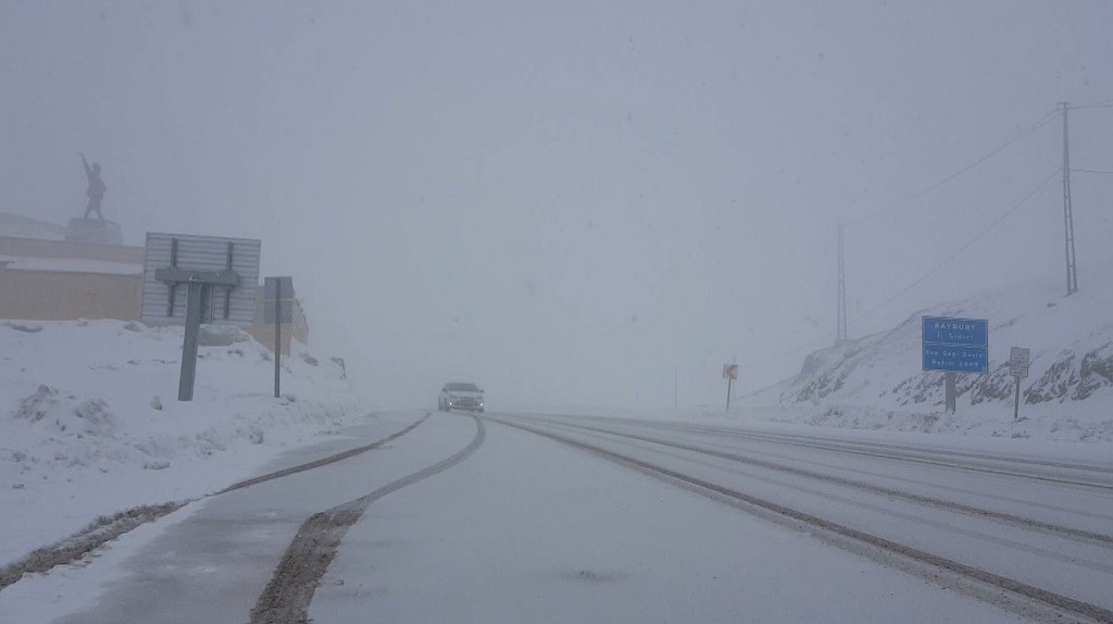 Yaz aylarına sayılı günler kala mayıs ayının 13’ünde Bayburt-Erzurum kara yolu üzerindeki 2409 rakımlı Kop Dağı Geçidinde kar yağışı etkili oldu.