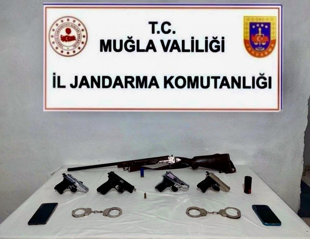Muğla İl Jandarma Komutanlığı ekipleri Menteşe İlçesi Yaraş Mahallesinde ikamet eden S.A. isimli şahsın elinde bulunan ruhsatsız tabancaları satmak için müşteri arayışında olduğu bilgisini aldı. Muğla İl Jandarma Komutanlığı İstihbarat Şube Müdürlüğü ve Menteşe İlçe Jandarma Komutanlığı ekiplerince şahsın ikametinde yapılan aramada; 4 adet faturasız kurusıkı tabanca, ruhsatsız av tüfeği, 4 adet tabanca şarjörü, elektro şok cihazı, göz yaşartıcı sprey ve 2 adet kelepçe ele geçirildi. Muğla Cumhuriyet Başsavcılığınca yürütülen faaliyet ile ilgili adli işlemlere başlandığı açıklandı.(İHA)