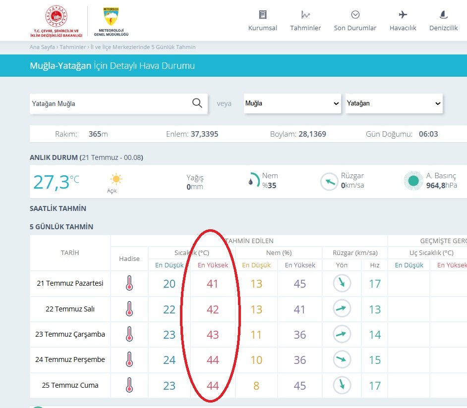 MUĞLA VE ÇEVRESİNDE AŞIRI SICAKLIKLAR: