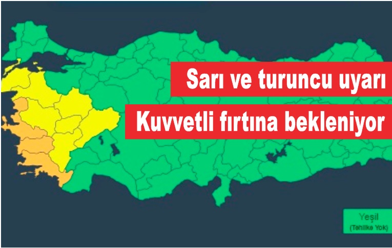 KUVVETLİ RÜZGAR UYARISI: Rüzgarın; Marmara, Ege, Batı Akdeniz, İç Anadolu’nun batısında güney ve güneybatı yönlerden kuvvetli (50-70 km/sa) Kıyı Ege ile Marmara’nın batısında kuvvetli fırtına (60-90 km/sa) şeklinde eseceği beklendiğinden yaşanabilecek olumsuzluklara karşı dikkatli ve tedbirli olunmalıdır