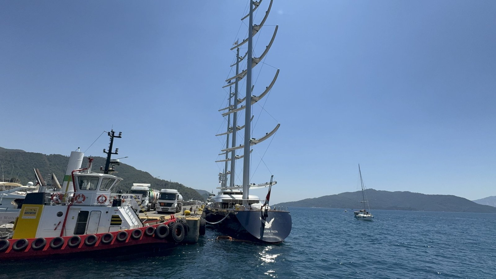 Dünyanın en büyük ve teknolojik yelkenli yatları arasında gösterilen Malta bayraklı Maltese Falcon, Muğla’nın Marmaris ilçesine geldi. Marmaris Cruise Port Limanı Büyük İskelesi’ne yanaştırılan yata 50 bin litre yakıt ikmali yapıldığı ve yaklaşık 2,5 milyon liralık harcama gerçekleştirildiği bilgisi edinildi.