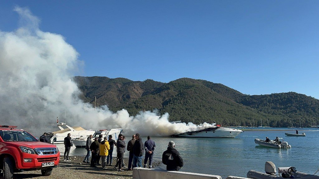 Muğla’nın Marmaris ilçesi Yalancıboğaz mevkiinde bir özel marinada bağlı motoryat yanarak kullanılmaz hale geldi