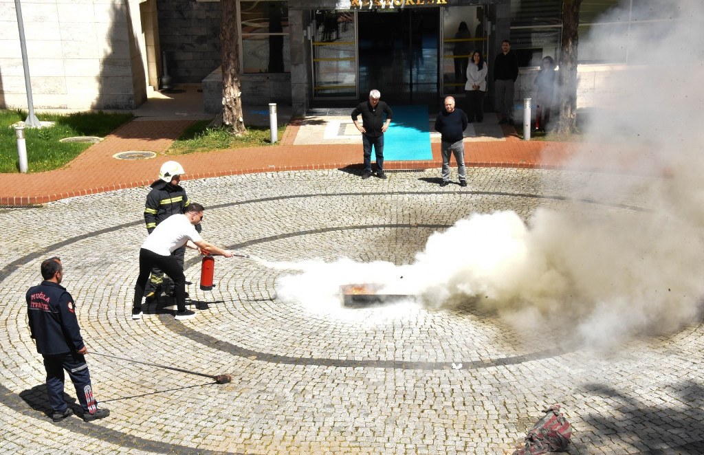 MSKÜ personeline, Muğla Büyükşehir Belediyesi İtfaiye Daire Başkanlığı görevlileri tarafından teorik ve uygulamalı yangın eğitimi verildi.