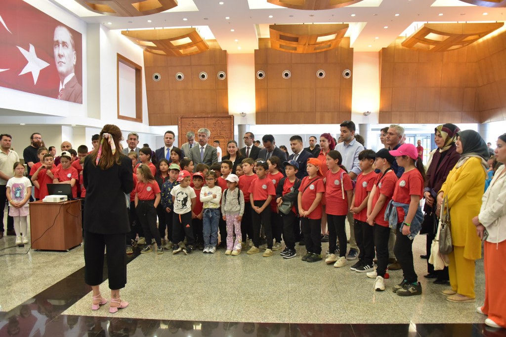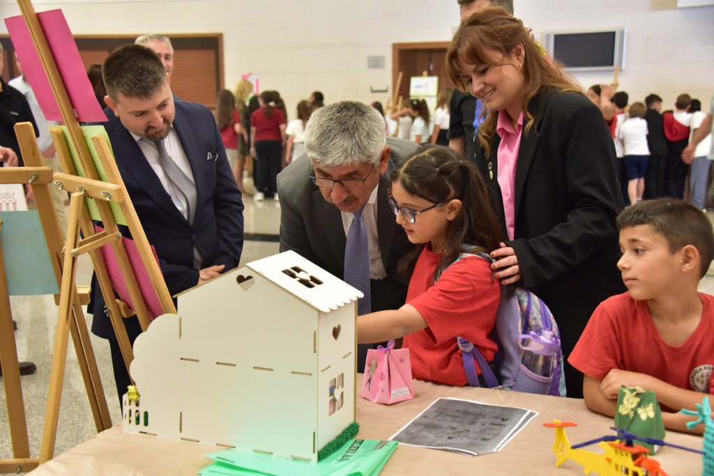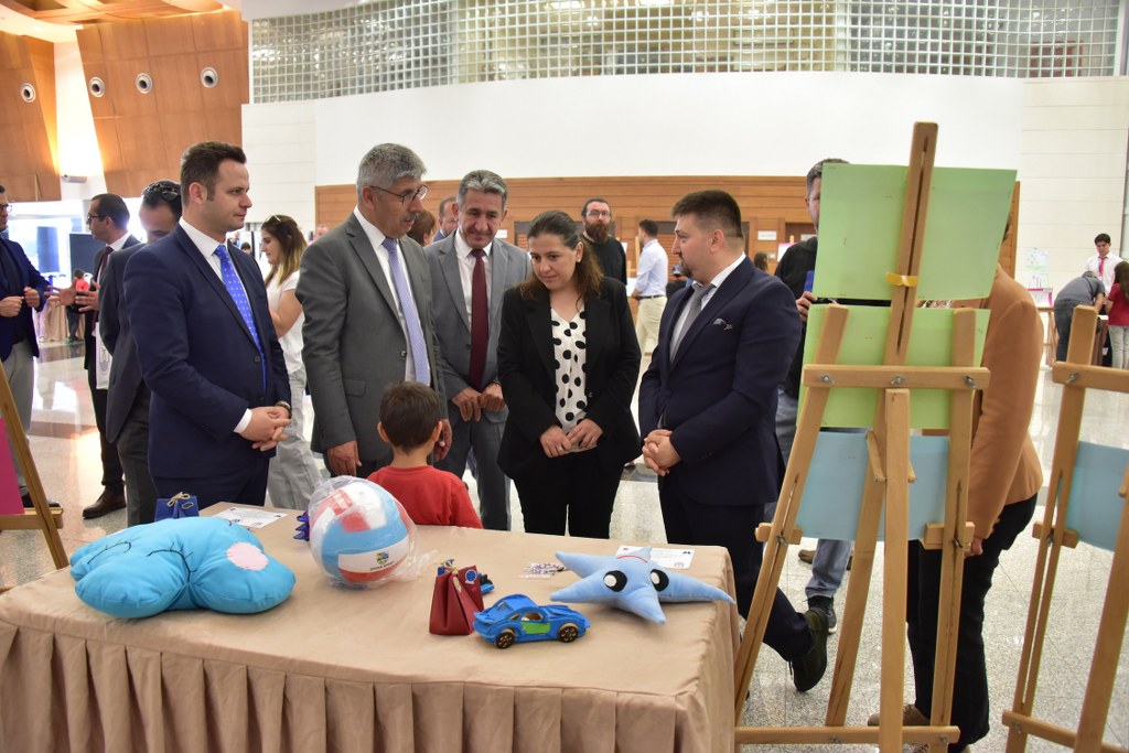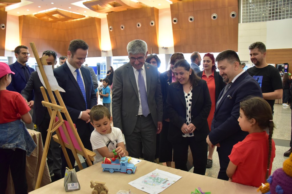 Dezavantajlı gruplardan gelen çocukların eğitim sürecine uyumlarını desteklemek, onları iklim değişikliği, su ve enerji tasarrufu gibi sürdürülebilirlik temalarıyla tanıştırmak ve üniversite öğrencilerinin topluma hizmet bilinciyle katkı sunmalarını sağlamak amacıyla düzenlenen etkinlikte, protokol tarafından sergi gezildi.