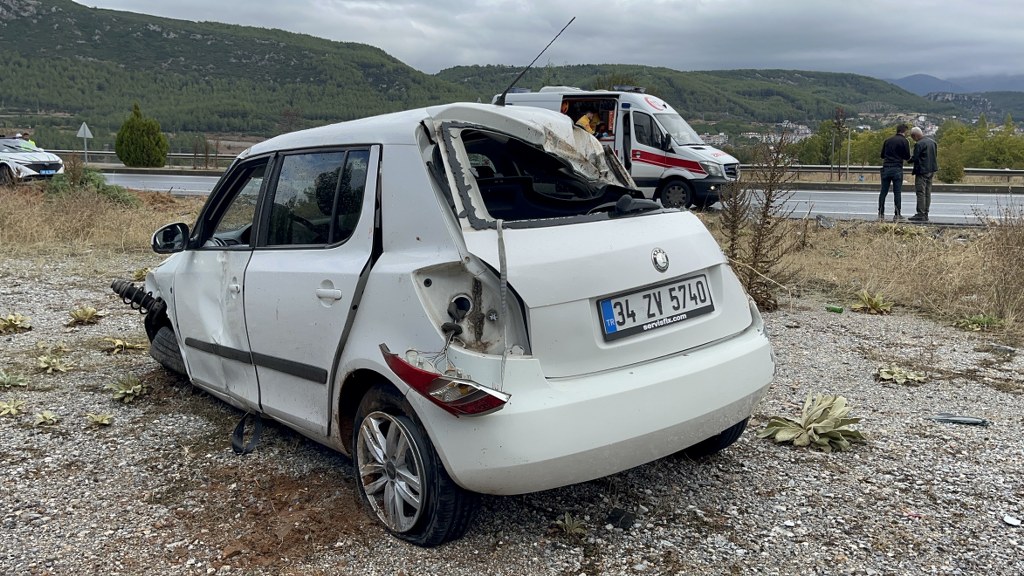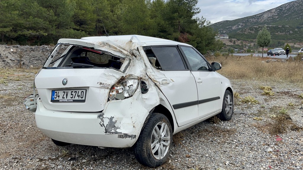 Muğla çevre yolunda yağış nedeniyle kontrolden çıkan otomobil, yol kenarındaki araziye daldı