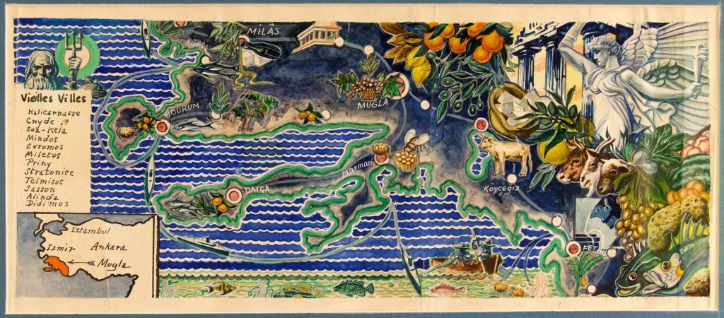 Muğla Şiirleri Antolojisi kitabının bir anlamda ilklerin kitabı olduğunu söyleyebilirim: Kitabın kapağında kullanılan harita, Halikarnas Balıkçısı Cevat Şakir Kabaağaçlı’nın vefatından kısa bir süre önce çizdiği Muğla il haritasıdır. Orijinal hali Kabaağaçlı aile fertlerinden Tuba ve Derya Kabaaçlı’nın arşivinde bulunan harita, ilk defa bir kitabın kapak tasarımında kullanılmıştır. Antolojinin sırt kısmında ise ressam Gülnur Efendioğlu’nun 2020 yılında yaptığı ‘