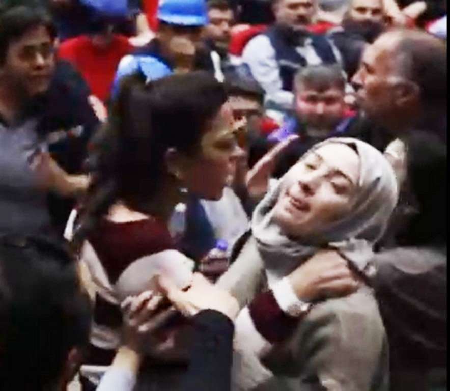 Sendika üyesi kadın, başörtülü basın mensubunun boğazını sıktı