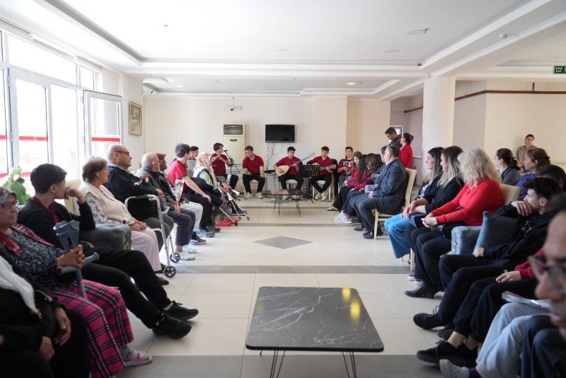 Ziyaretin en özel anları ise Güzel Sanatlar Lisesi müzik bölümü öğrencilerinin hazırladığı konserle yaşandı. Enstrümanları ve sesleriyle huzurevi sakinlerine unutulmaz bir gün yaşatan gençler, Türk müziğinin eşsiz eserlerini seslendirdi.