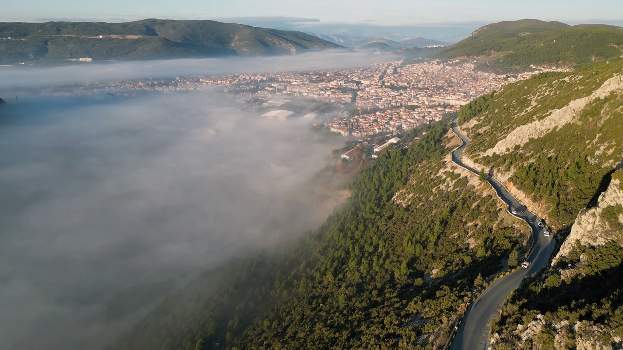Muğla'nın Menteşe ilçesi sabah saatlerinde sis bulutu içinde adeta kaybolurken, ortaya kartpostallık görüntüler çıktı.