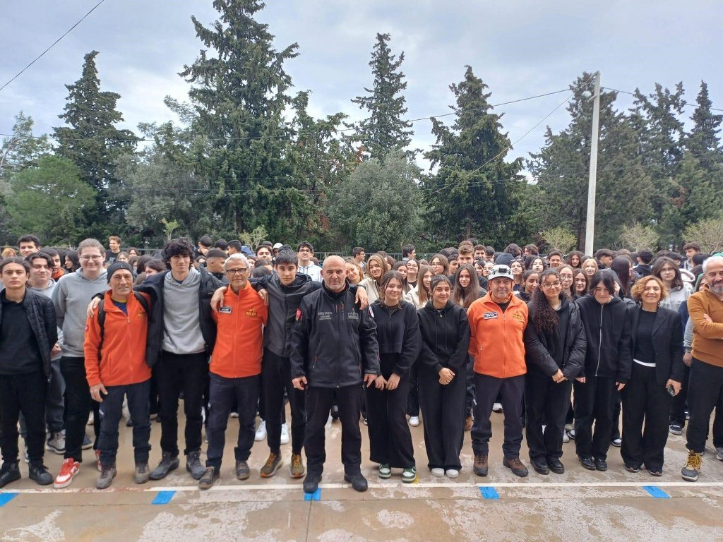Muğla’nın Datça ilçesindeki bir okulda deprem tahliye tatbikatı yapılarak öğrencilere afet öncesi, anı ve sonrasında yapılması gerekenler anlatıldı