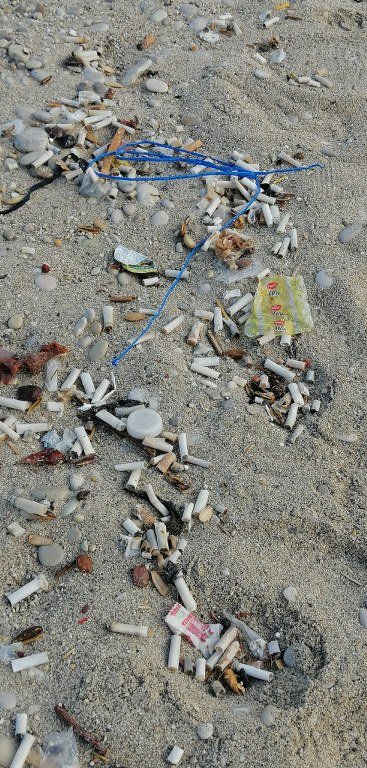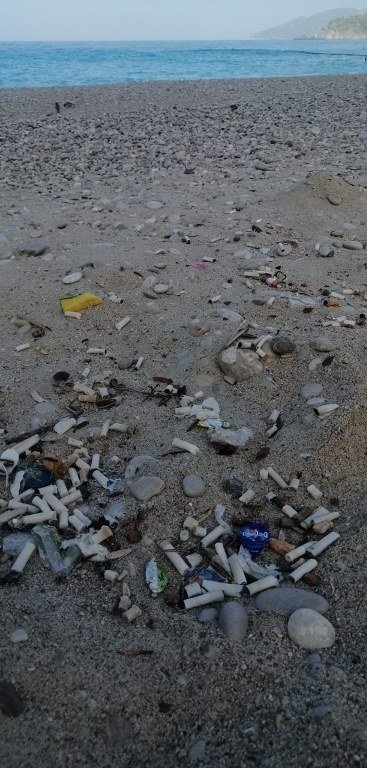 Dev dalgalar kıyıdaki izmarit ve plastik atıklarını kıyılarda biriktirdi. Dalgaların son ulaştığı alanlarda biriken izmarit ve plastik atıklar dikkat çekti.