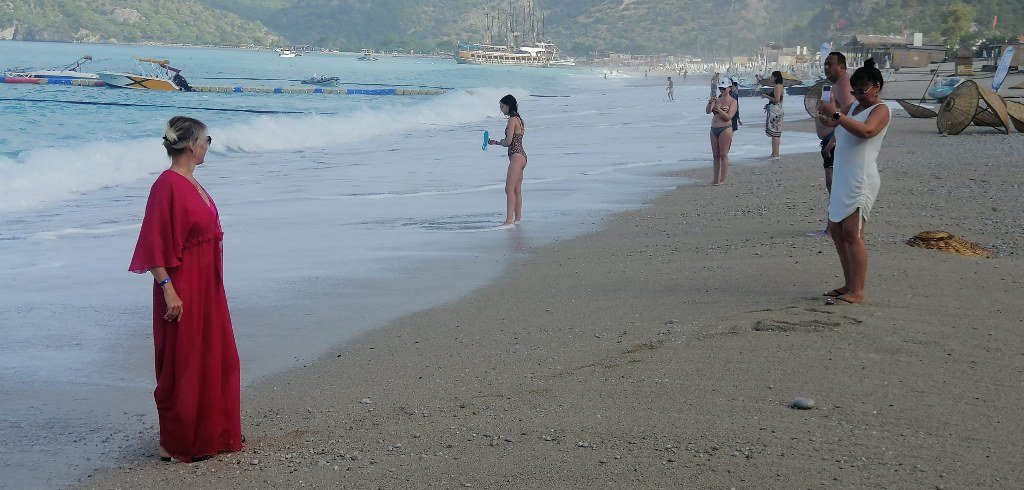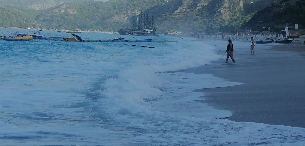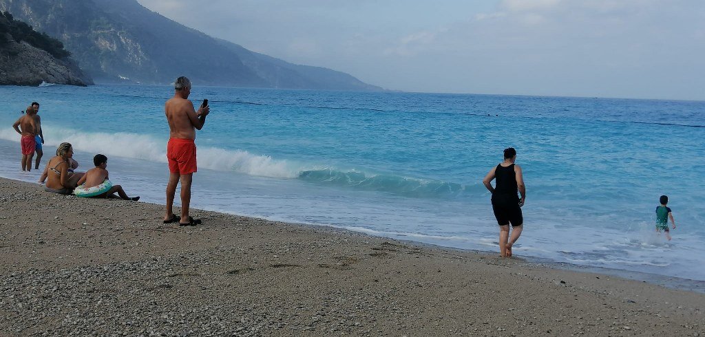 Sabah erkenden denize giden tatilciler Belceğiz’de dev dalgalarla karşılaştı. Dalgalar kumsalın ortalarına kadar çıktı. Dev dalgalar çocuklar için eğlenceli, yaşlı ve engelliler için ise tehlike oluşturdu. Yerli ve yabancı tatilciler dev dalgaların keyfini yaşama fırsatı buldu.