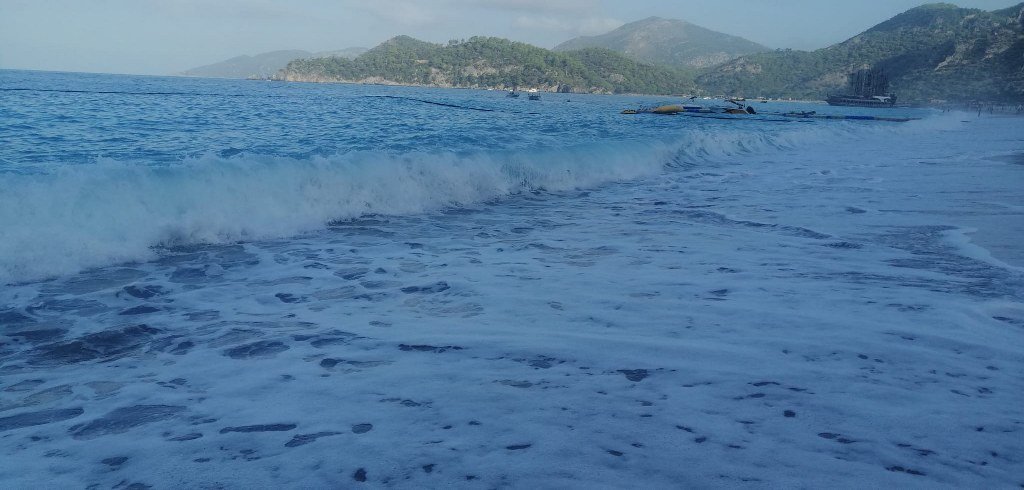 Fethiye’nin dünyaca ünlü turizm merkezi Ölüeniz’de dev dalgalar oluştu. Belceğiz Plajı’nda sabah saatlerinde oluşan dev dalgalar kumsalın ortalarına kadar çıktı. Şemsiyeler denize sürüklendi.