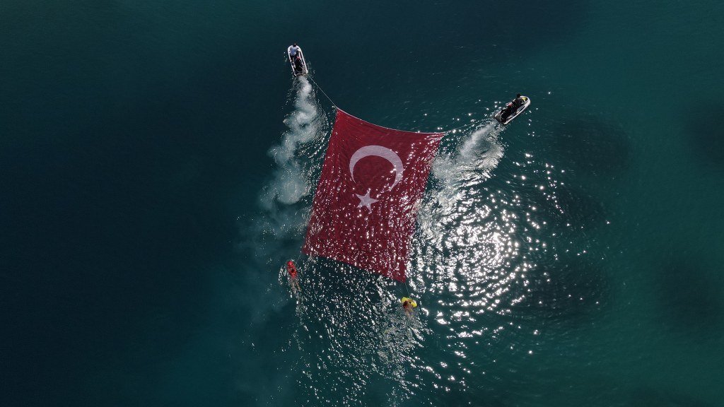 Kumburnu Beach Of Lagoon Müdürü Burak Ardahan, "Türk bayrağımızı denizde, havada ve karada dalgalandırmanın gururunu yaşıyoruz" dedi.