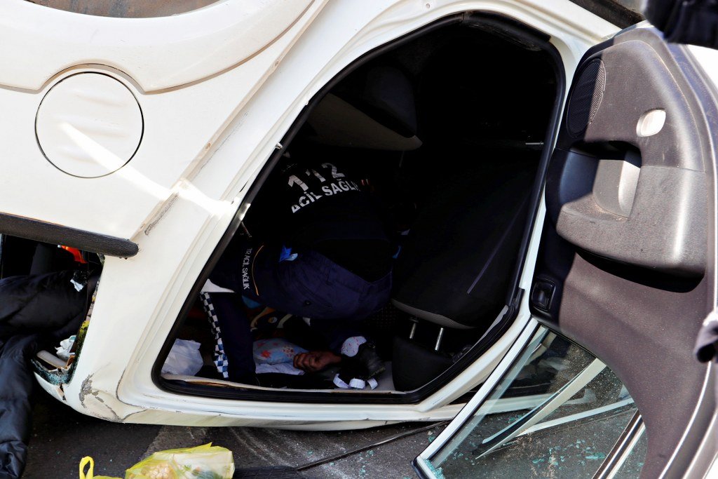 Kazayı gören diğer sürücü ve vatandaşların ihbarı ile olay yerine itfaiye, polis ve sağlık ekipleri sevk edildi. Kısa sürede kaza yerine gelen ekipler ters dönen araç içerisinde bulunan sürücü Hüseyin K.'yi sıkıştığı yerden çıkarmak için büyük çaba sarf etti. Kısa süreli kurtarma çalışmasının ardından yaralı olarak araç içerisinden çıkartılan Hüseyin K. olay yerindeki ilk tedavisinin ardından 112 Acil Sağlık ekipleri tarafından ambulansla hastaneye kaldırıldı. (İHA)