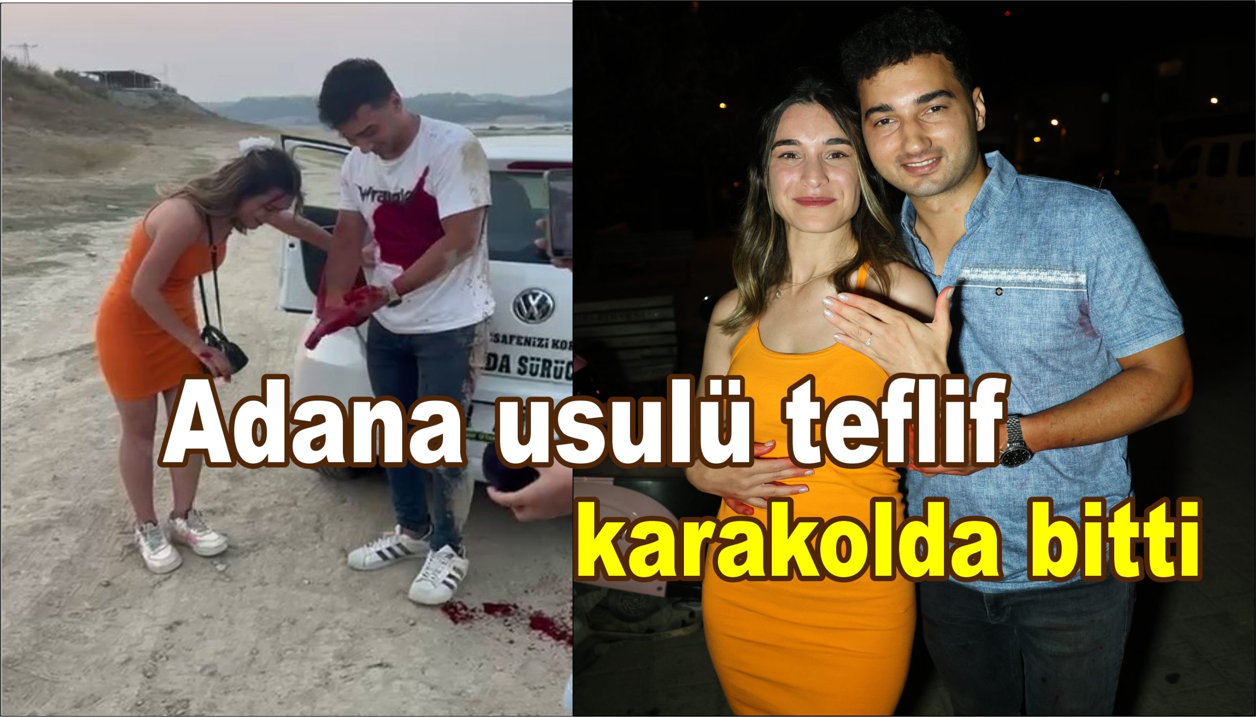 Adana'da husumetlisi tarafından silahla vurulmuş gibi mizansen yapıp, sevgilisine evlilik teklifi eden genç, ‘Evet' yanıtını aldıktan sonra karakolluk oldu. En mutlu günlerinde karakola düşen çift, "Çevredekiler, torpil patlamasını silah sandıkları için polis çağırmışlar. En mutlu günümüz karakolda bitti" dedi.[/caption]