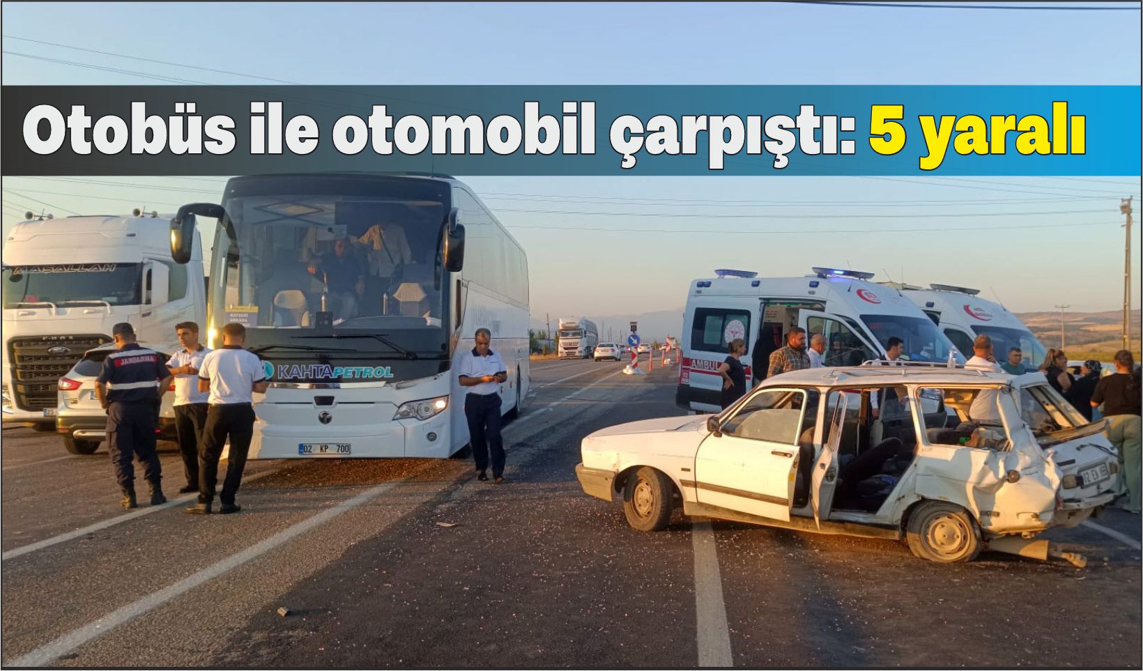 Edinilen bilgilere göre, Gölbaşı istikametinden Gaziantep yönüne seyir halinde olan Mustafa Çetinkaya idaresindeki 02 KP 700 plakalı otobüs ile Aydın Kartal idaresindeki 02 EN 955 plakalı otomobil, Çelik Köyü yol kavşağında çarpıştı. Kaza sonucunda otomobilde bulunan sürücü Aydın Kartal, Buse Elif Kartal, Yiğit Hurşit Kartal, Fatma Torun ve Gülden Kartal yaralandı. Yaralılar, olay yerine sevk edilen sağlık ekipleri tarafından ilk müdahalelerinin ardından Gölbaşı Devlet Hastanesi' e kaldırıldı. Kazayla ilgili soruşturma başlatıldı./İHA